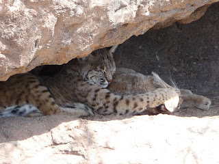 Bobcats! Too cool! The rock ledge they are laying on and the rock above them, in fact their entire enclosure is man made. It looks so natural, you might not know if you weren't made aware of it.